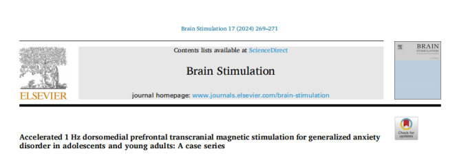 In this context, Mayo Clinic and Jonathan Downar's team in the Department of Psychiatry at the University of Toronto collaborated to investigate whether dorsomedial prefrontal accelerated low-frequency 1 Hz transcranial magnetic stimulation is safe and effective for the treatment of generalized anxiety disorder in adolescents and young adults. And related results “Accelerated 1 Hz dorsomedial prefrontal transcranial magnetic stimulation for generalized anxiety disorder in adolescents and young adults: A case series” is published in the journal Brain Stimulation (IF=7.7, March 2024).